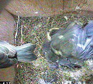 My conclusion is that one of the chicks must have fledged before 6:13 when the system was switched on.