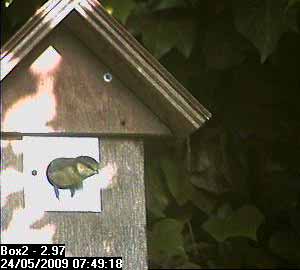 At last, this is a chick having a look outside. You can tell it's a chick by it's short tail feathers.