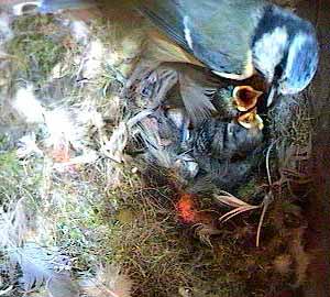 Here is Fay giving the chicks a last feed before leaving them for the night. All three chicks seemed fine then.