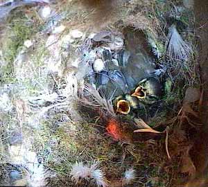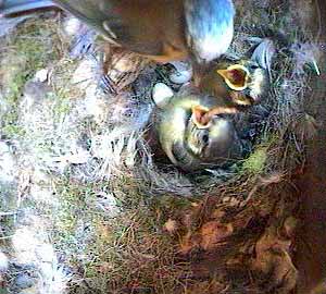 She almost immediately turns around and tries again, but both chicks want to go to sleep rather than try to stuff down still more food.