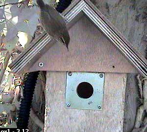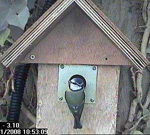 Looking at the metal plate with its four screws reminds me that great tits can get through this one quite easily.