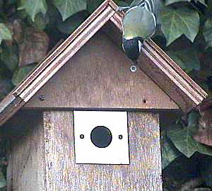 I know the RSPB site says that a great tit can make use of a box with a 28mm hole but we've never seen one do it!