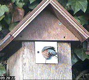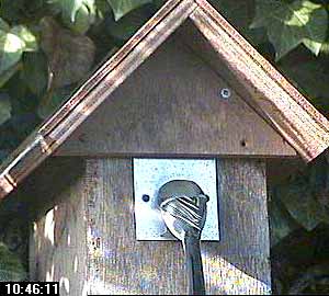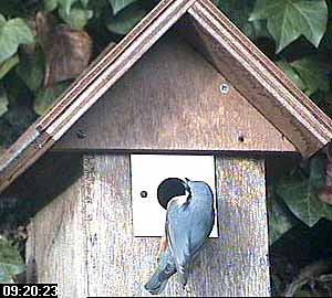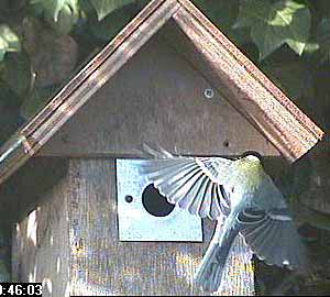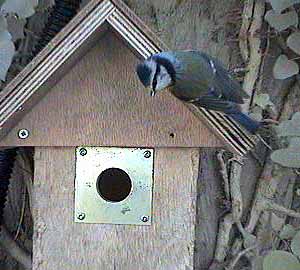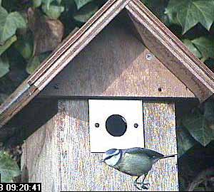 The outside cameras pick up some odd shots from time to time. Here's one of a bluetit doing some wingless flying!