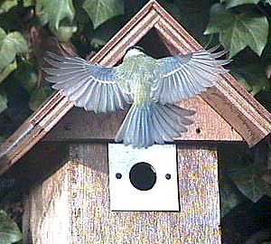 Ah! A bluetit caught in the act of coming into land on Box2.