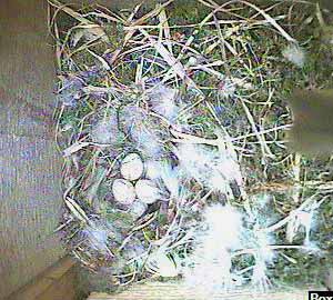 Finally, Rosie has let us see her eggs at last. If she laid the first on Saturday 24th, she should have three by now - and here is a picture of three eggs.