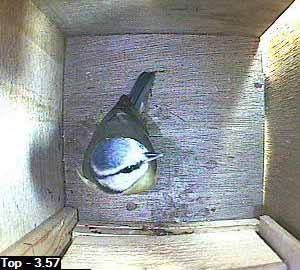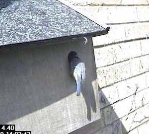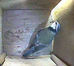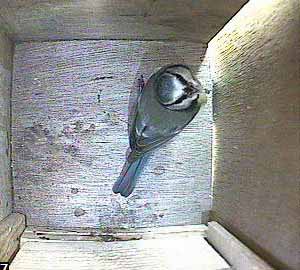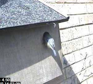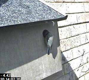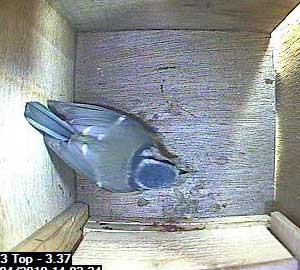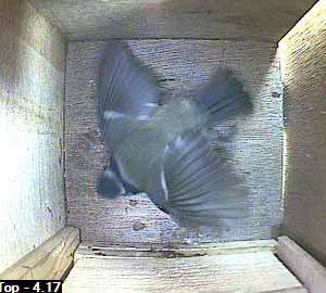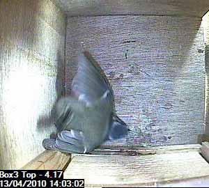 This looks as though the bird is crouching down as though it was expecting its partner to follow it into the box. No such luck yet though.