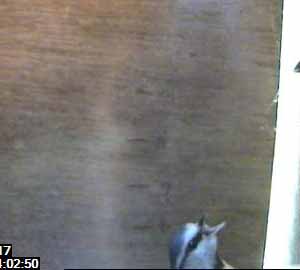 It now jumps up onto the shelf beneath the camera. It's a bit too close to the camera for a perfect focus, but it's better then nothing.