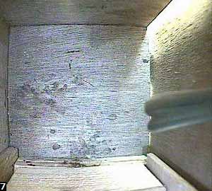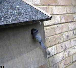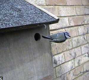 Here you can just see the tip of the beak of the bird on the hole, and the reaction of the bird inside.