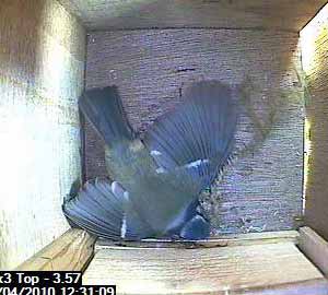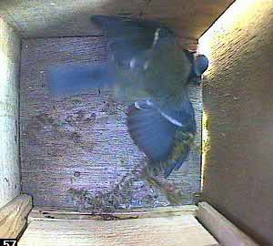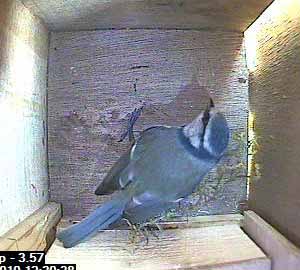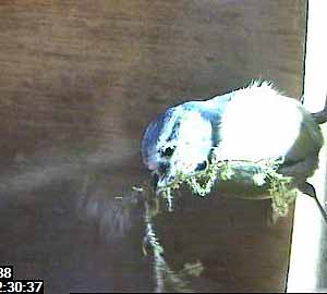 Well, she's inside the box, but she seems to have lost hold on the moss on the way in!