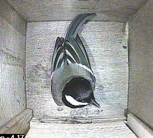 Today we have had a visit to Box3 from a pair of great tits. I'm not quite sure whether this is the male or the female.