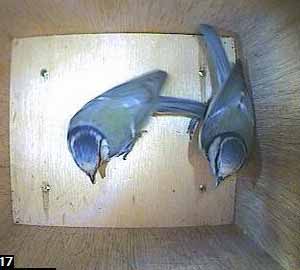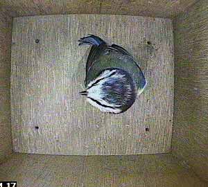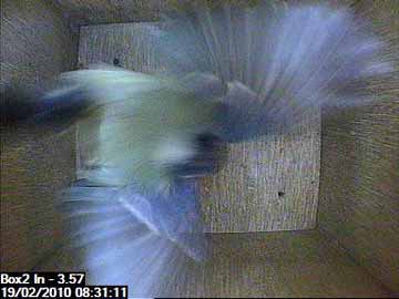 The female was following the male into box. The male is the bird in the middle with the female in the top of the picture.