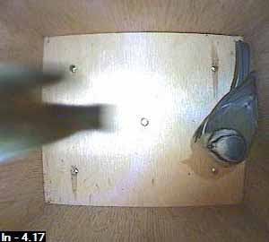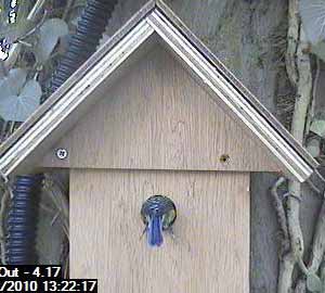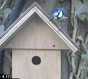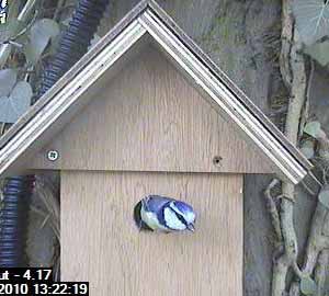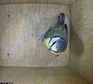 Exit one male bluetit.