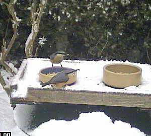 We frequently get a nuthatch on the bird table or on one of the feeders, but a pair is exceptional!