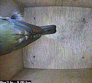We are still getting a few visits each day into Box2. However, with the weather we are getting at the moment, I do not expect any serious nesting activity to take place!