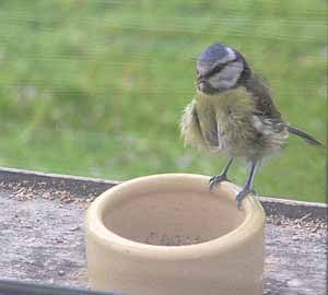 This shows Fluffy late in the season. She is the only bluetit that we could be confidant of recognising each time she came to feed!