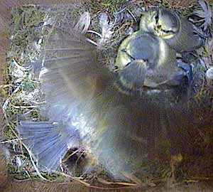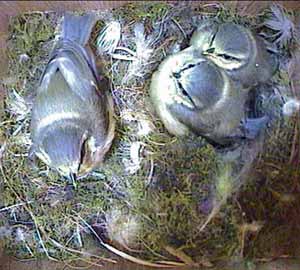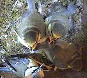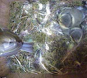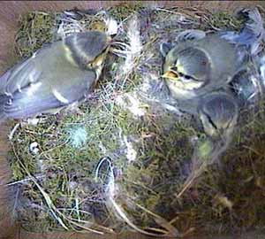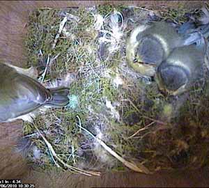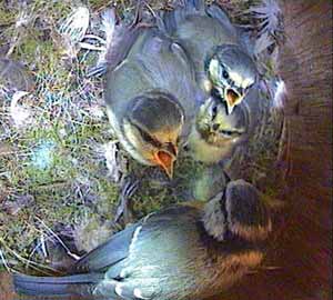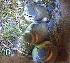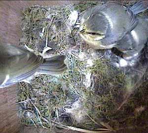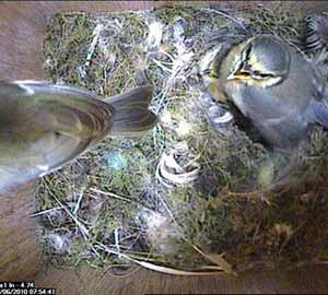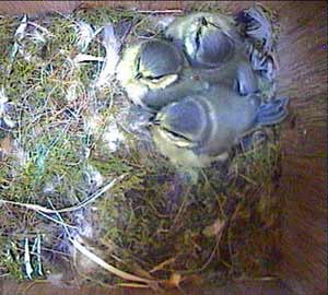 Two and a half hours later all three chicks are still in the nest box. Here Donna is doing the housework again.