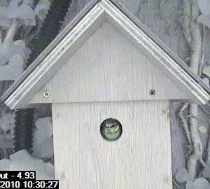 ... and after a short while the chick drops back into the nest box looking rather sheepish!