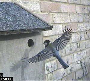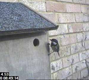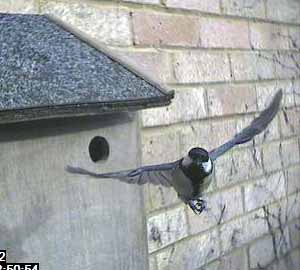 ... to be immediately followed by its partner. Note that the bird on the nest box entrance hole has no tail - it must be Ferdinand again!