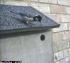 A pair of great tits appear to be getting quite interested in Box3. Much as I would prefer a bluetit pair, with the hole size set as it is, I cannot see the bluetits managing to keep the great tits out if they really want it.