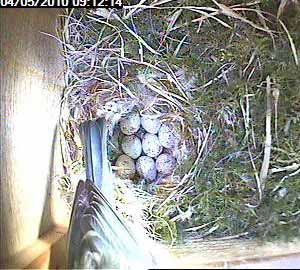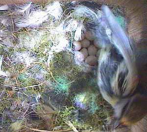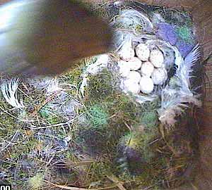 Here is a picture of Donna about to leave Box1. You can clearly(?) see 10 eggs - well perhaps I should have said probably see 10 eggs.