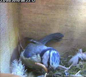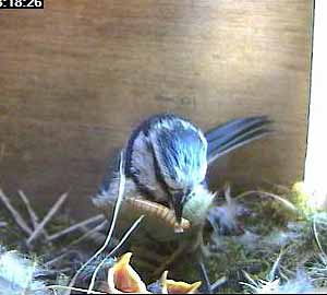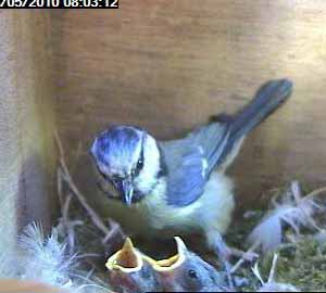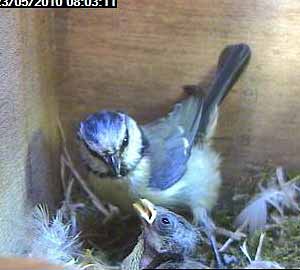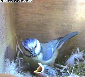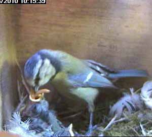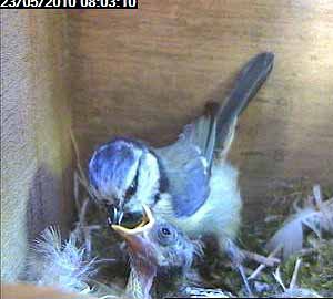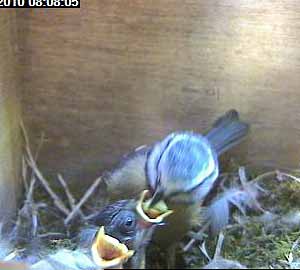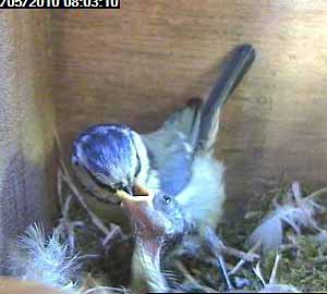 When we switched on this morning, we found Will feeding the chicks in Box3.