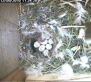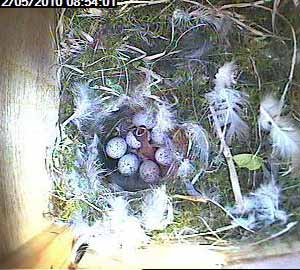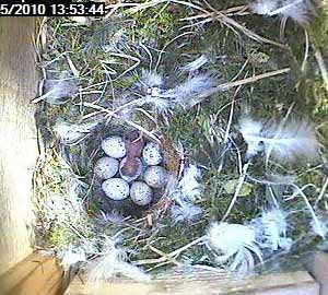 At two o'clock as I come to write this entry, there is still only one hatched chick in the nest box. They should all hatch over the next 24 hours.