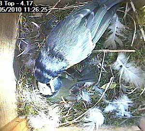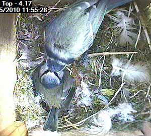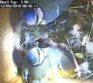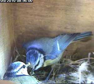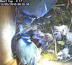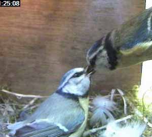 Here Will is passing a piece of food to Rosie without even coming into the nest box!