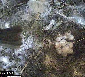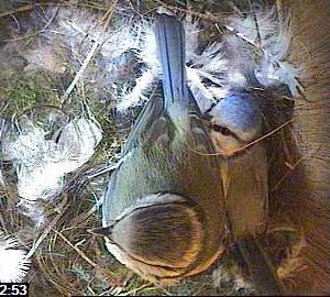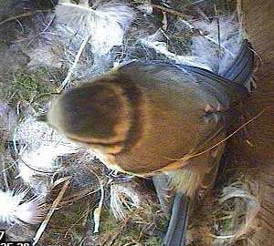 Today the affairs in Box1 appear to come to a head. Both females are trying to incubate the eggs in it, and are frequently both in the box at the same time. As I cannot reliably tell them apart, this makes things difficult! I tend to call the female that is there the most Amy, although I'm sure I often get it wrong.
