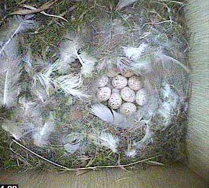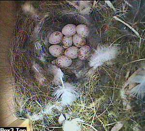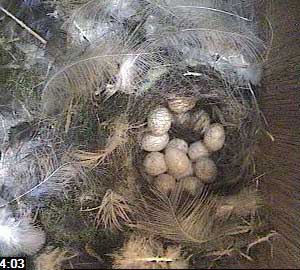 This looks like 13 or 14 eggs to me. It could be 14 as there were 13 yesterday. Time will tell.
