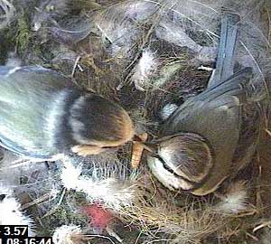 Joe brings food to Amy fairly often. Here he is with part of a mealworm.