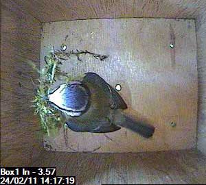 Box1 was the first of our boxes to have any nesting material brought into it. This happened on 24th February, well ahead of either of the other two boxes. However, for some time after this, not a lot happened!