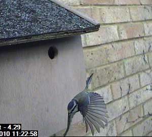 Saturday 11th, the first visitor entered Box1. First a bluetit landed on the entrance. This had happened several times before, but this time was special.