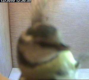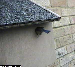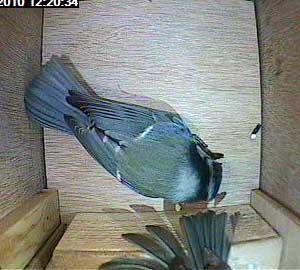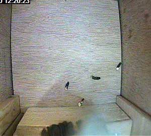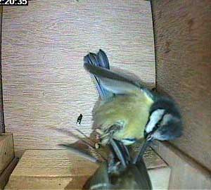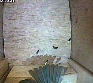For the next 30 to 40 seconds the two birds fight at the entrance hole. Here is Harry inside ...