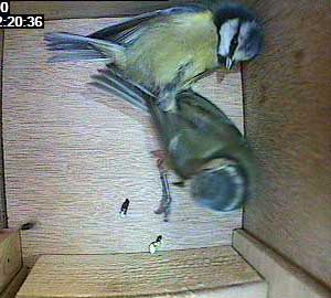 I know that this is supposed to be the season of goodwill, but today two bluetits celebrated Christmas Day by having a right royal battle on the floor of Box3!