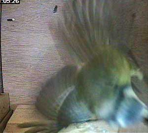 I never realised before that bluetits had a thick layer of white down beneath their wings! Of course, one doesn't often see them from this angle.