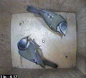 Clearly there is a pair of bluetits interested in Box1. Here they are doing the ritual swap-over dance.
