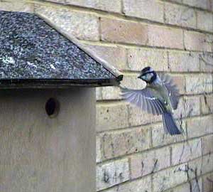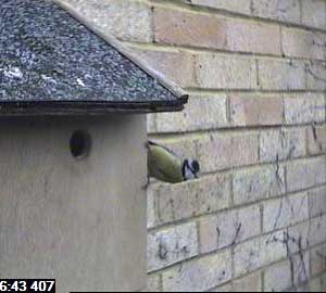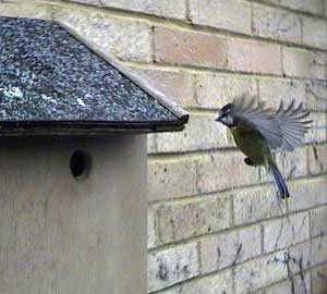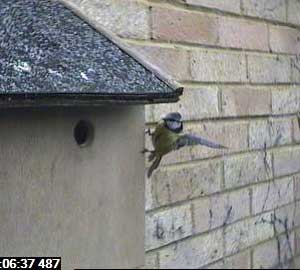 Another bluetit approaches the box.