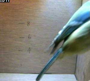 Will has crouched down as though it is expecting another bluetit to come into the box.