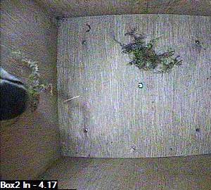 Suddenly, she placed it on the floor of the box. Some birds make great efforts to hurl their nesting material all around the place, but not this bird - at least not this time!