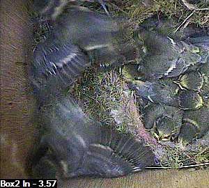 Joy and Dave's chicks were the first to hatch and so will probably be the first to fledge - this we expect to happen at the end of this week.