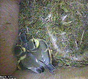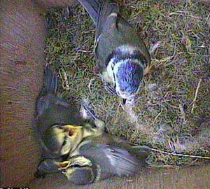 At least Joy and Dave are continuing to feed them - but I don't know how long they would go on doing this if the chicks were to spend another night in the box.