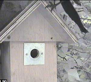 The world outside the nest box can be a dangerous place! We are not quite sure whether this is a magpie or a crow, but if that talon caught a chick it wouldn't have much chance whoever owned it!