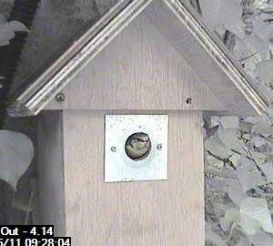 It was some time before we noticed that one of Amy's chicks has flown the nest today! All the action appeared to be happening in Box3 and the fact that a solitary chick had left Box1 was overlooked. Fortunately, we still had all the pictures taken by the Box1 cameras and so we could reconstruct the story.