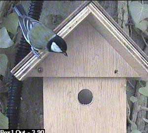 it's been up for a couple of weeks, so far Box2 seems to have been ignored. However, at last a bluetit appears to be taking an interest in it.
