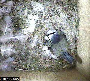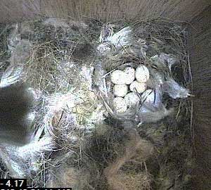 Bluetits normally incubate their eggs for about 12 days before they hatch out, so we should expect Jess's clutch to start hatching around 1st May.