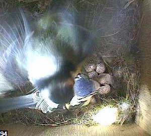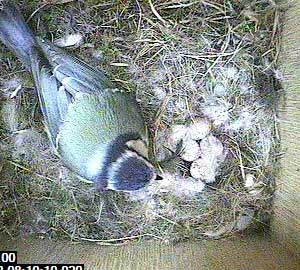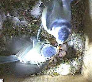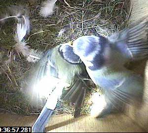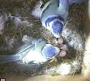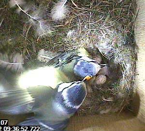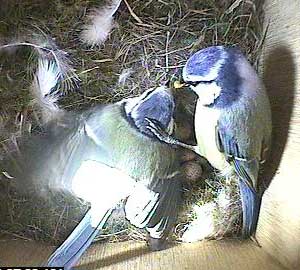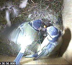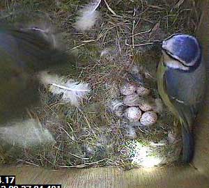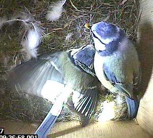 In all the years we have been watching the bluetits in our garden, this is the first time we have seen them mating in the nest box after the start of egg laying!