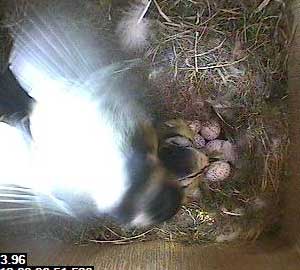 James leaves a few seconds later. All the six eggs that have been laid so far can be seen here!