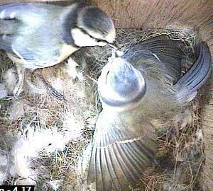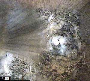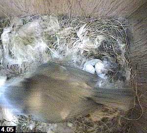 First, here is a picture of Bob feeding Becky in the nest box. At least that proves he is still around!