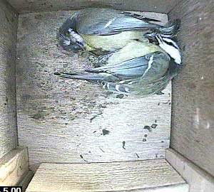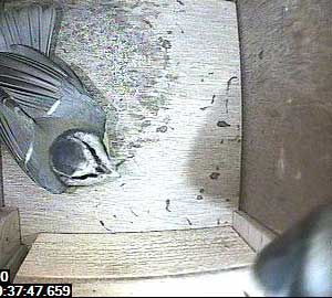 Almost immediately, another bluetit followed it into the box ...