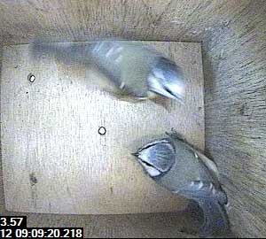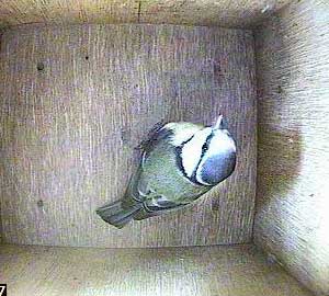 When a bluetit goes into a box at this stage of the season, once inside it spends some time just taking in the atmosphere of the place. It doesn't move around much, but just looks around.